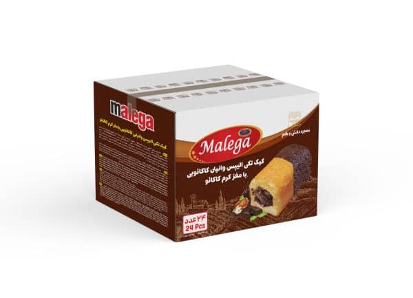 کیک دو قلو الیپس وانیلی کاکائویی با مغز کرم کاکائو 60 گرمی ، 24 عدد در جعبه